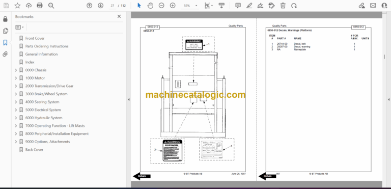 BT WSXOS Electric Stacker Full Manual (Service, Parts and Operators Manual)