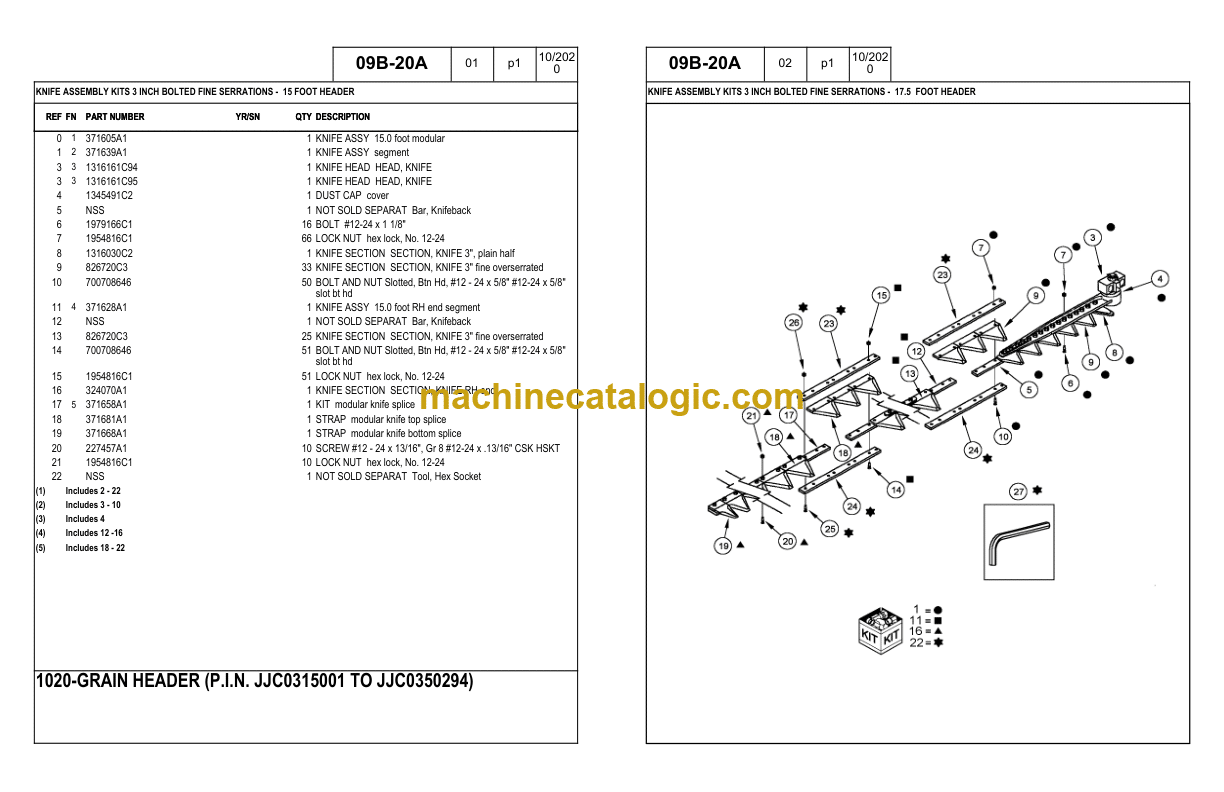 02 KIT CUTTERBAR W/DHT GRDS 17.5FT W/KNIFE