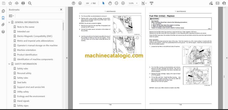 - Operator’s manual storage on the machine