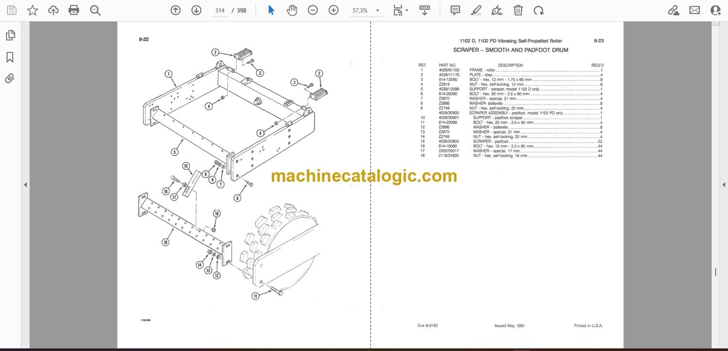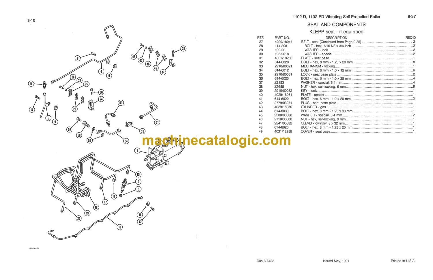 Case 1102D, 1102PD Vibrating Self Propelled Roller Parts Catalog