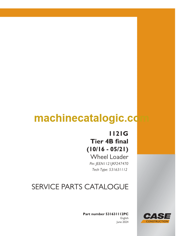 Case 1121G Tier 4B Final Wheel Loader Service Parts Catalogue