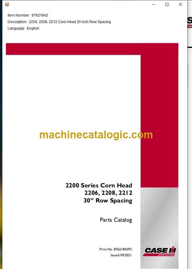 Model: 2200 Series Corn Head and 2206, 2208, 2212 30′ Row Spacing