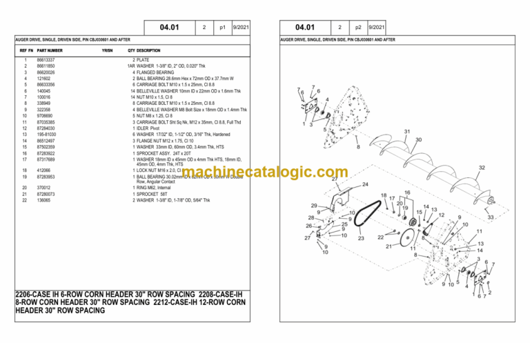 AUGER DRIVE, SINGLE, DRIVING SIDE. PIN CBJ030601 AND AFTER