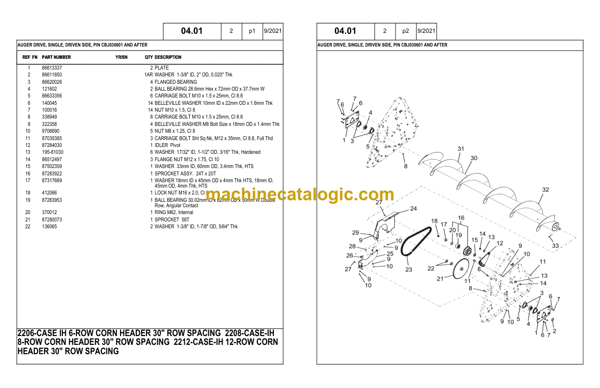 AUGER DRIVE, SINGLE, DRIVEN SIDE, PIN CBJ030601 AND AFTER