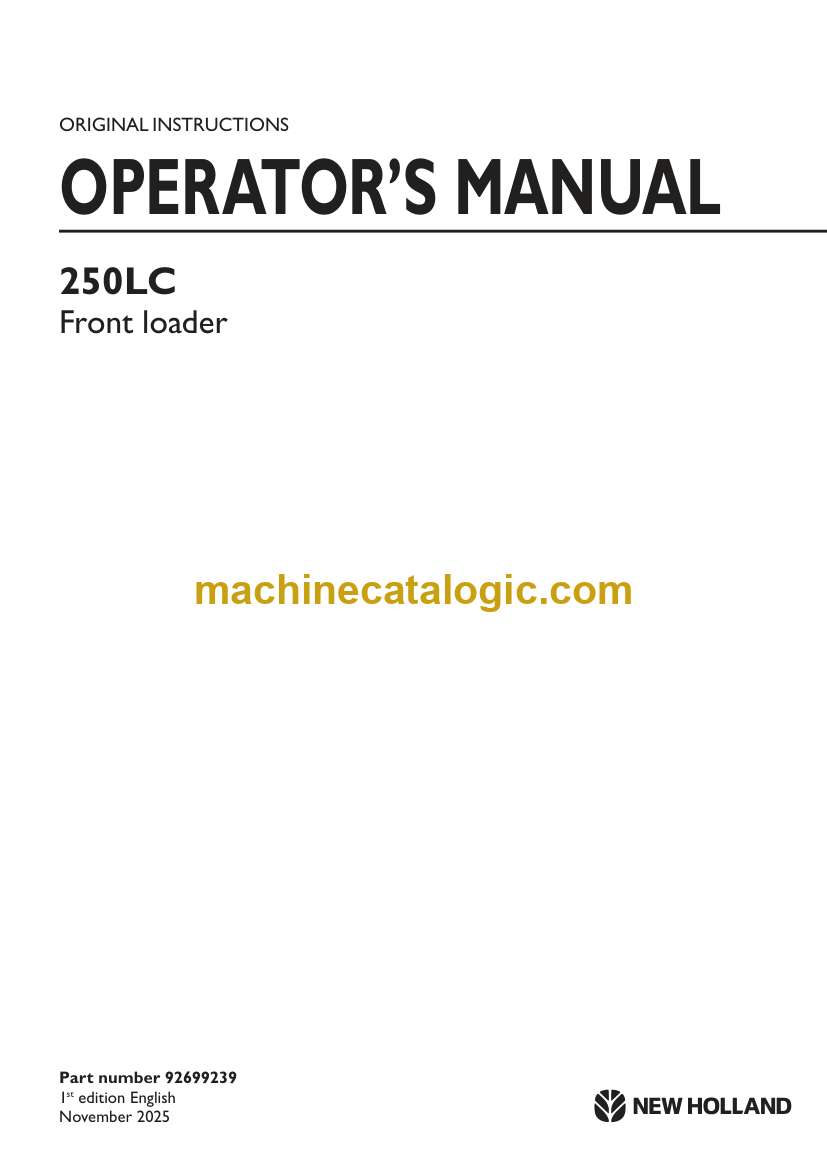 Case 250LC Front loader Operators Manual (92699239) (November 2025)