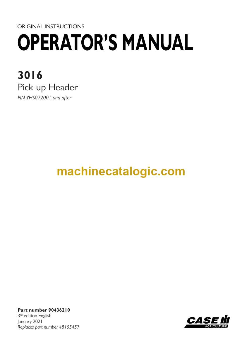 Case 3016 Pick-up Header Operator Manual