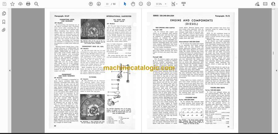 Out in the field or around the yard, this Case International Harvester is usually dragging implements, running a loader, or pulling wagons, often in dust, mud, and cold starts. This service manual helps you trace problems logically, so you’re not just throwing parts at it. Say it won’t keep oil pressure when it’s hot: instead of guessing at pumps and bearings, you’ll follow a sequence to check the gauge, verify pressure with a test setup, inspect for leaks, and only then decide what’s actually worn.