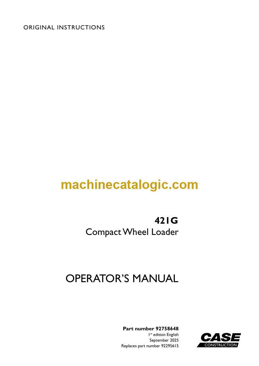 Case 421G Compact Wheel Loader Operators Manual (92758648 Replaces 92295615) (September 2025)
