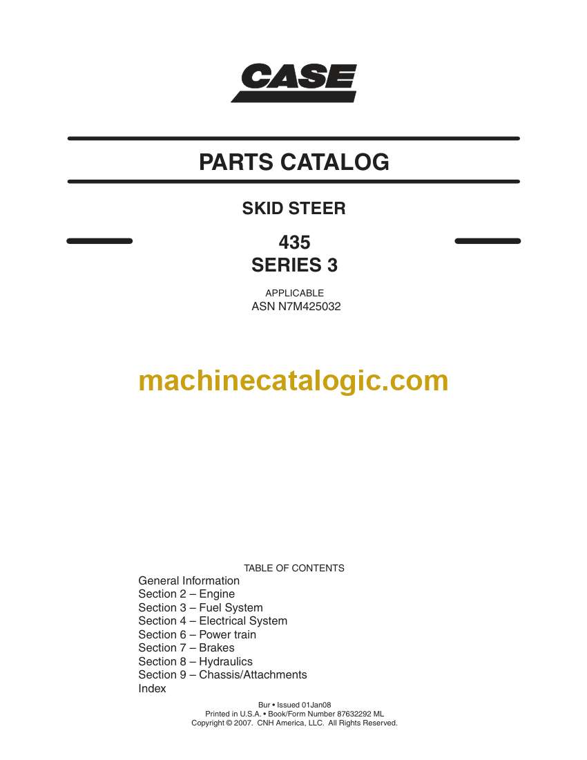 Case 435 Series 3 Skid Steer Loader Index: