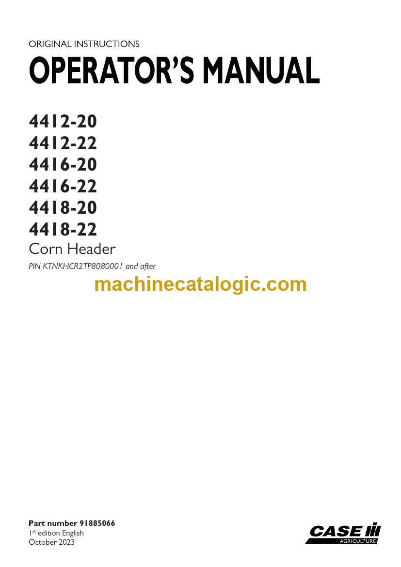 Case 4412-20, 4412-22, 4416-20, 4416-22, 4418-20, 4418-22 Corn Header Operator Manual