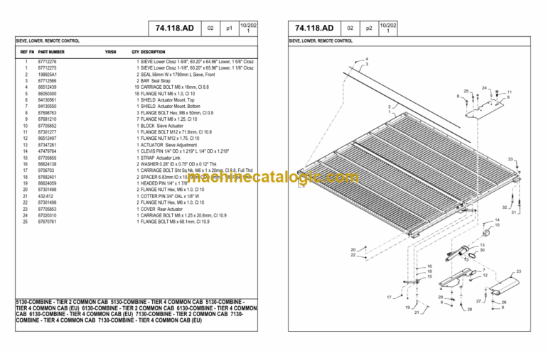 Case 5130, 6130, 7130 T2-T4 Combine Common Cab Index: