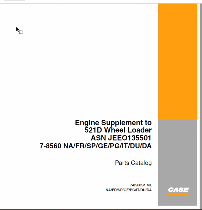 Case 521D Wheel Loader Supplement Parts Catalog (7-8560S1ML)