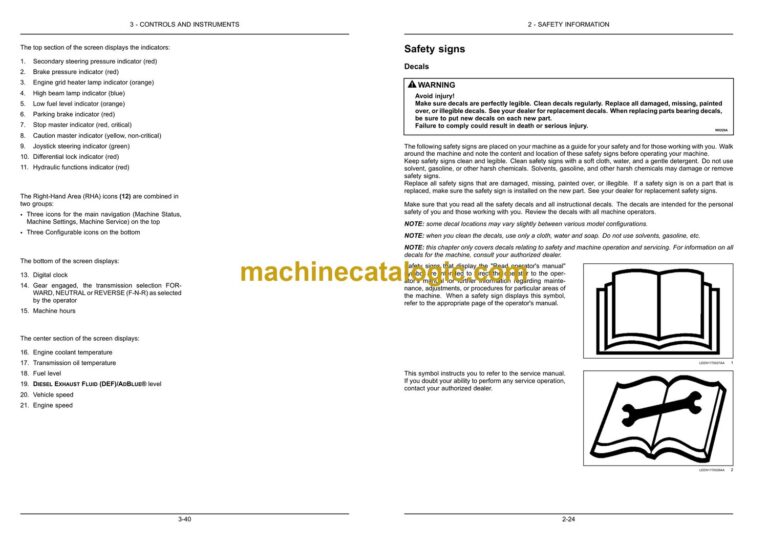 Operator’s manual storage on the machine
