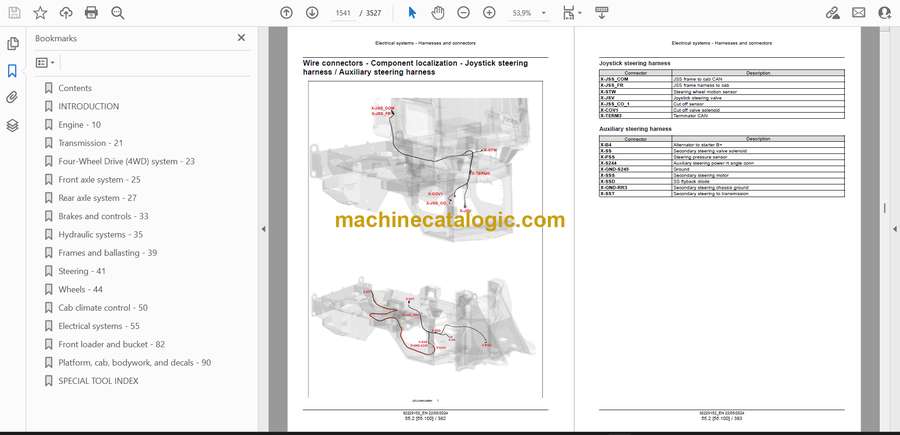 Out on a construction site or in a quarry, that 521G’s touchscreen loader is working in dust, mud, cold starts, and hot days, and when it quits, nobody’s happy. This service manual helps you trace faults step by step, so you’re not just guessing at sensors and modules. Say the touchscreen freezes and the loader won’t move—this book walks you through how to check power, verify CAN signals, test switches, and isolate whether it’s the screen, wiring, or a control unit before you start ordering parts.