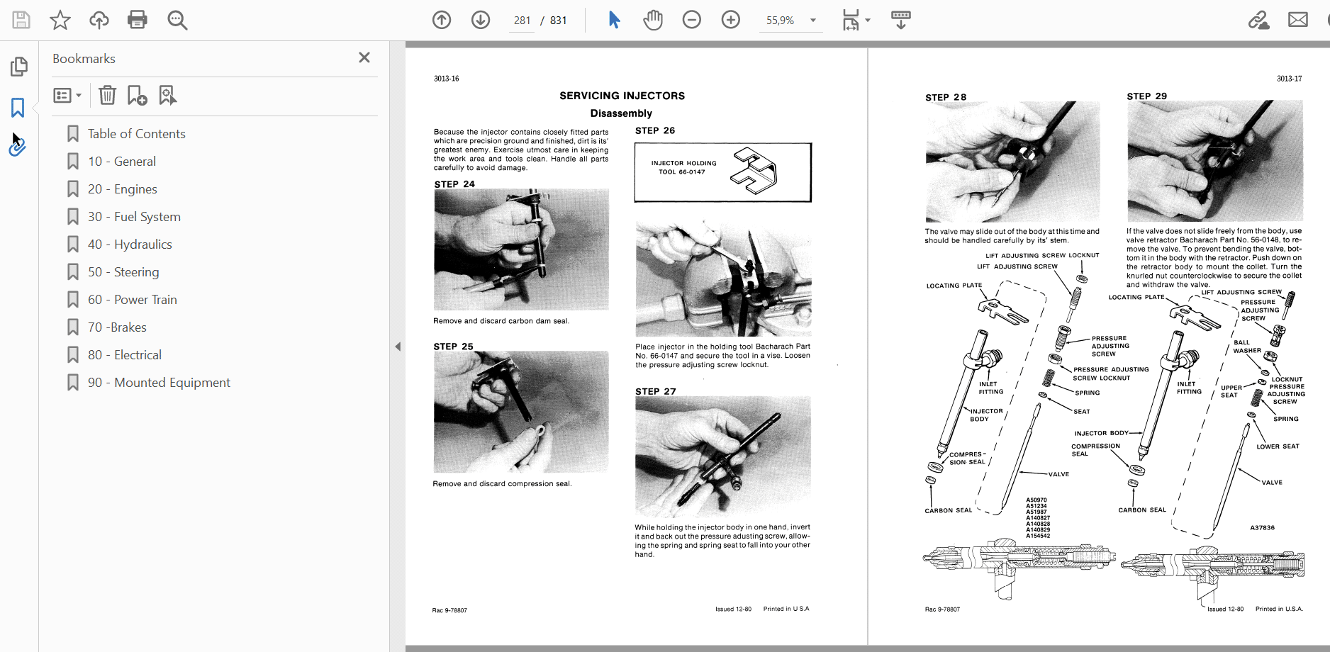 Table of Contents 10 – General 20 – Engines 30 – Fuel System 40 – Hydraulics 50 – Steering 60 – Power Train 70 -Brakes 80 – Electrical 90 – Mounted Equipment