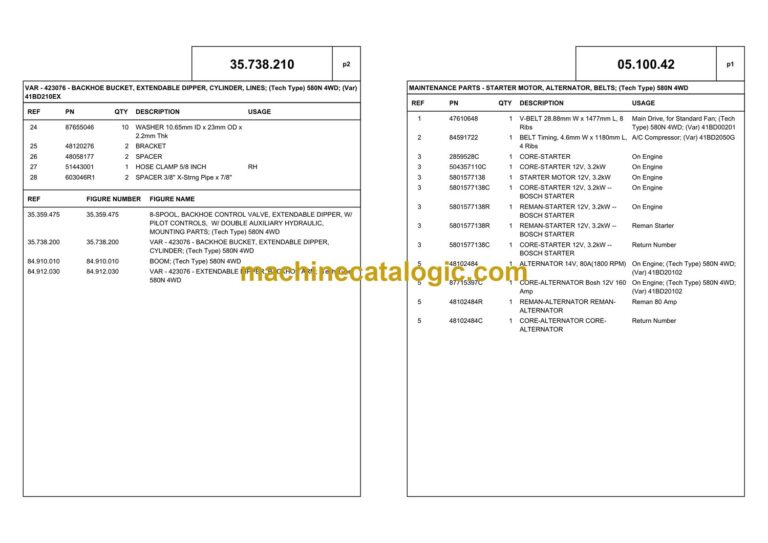 Case 580N Backhoe Loader Service Parts Catalogue (675716750PC)