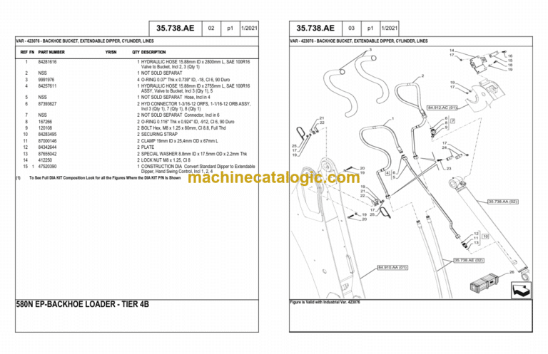 00.000.84 02 PICTORIAL INDEX – BOOMS, DIPPERS & BUCKET (EXTENDABLE)