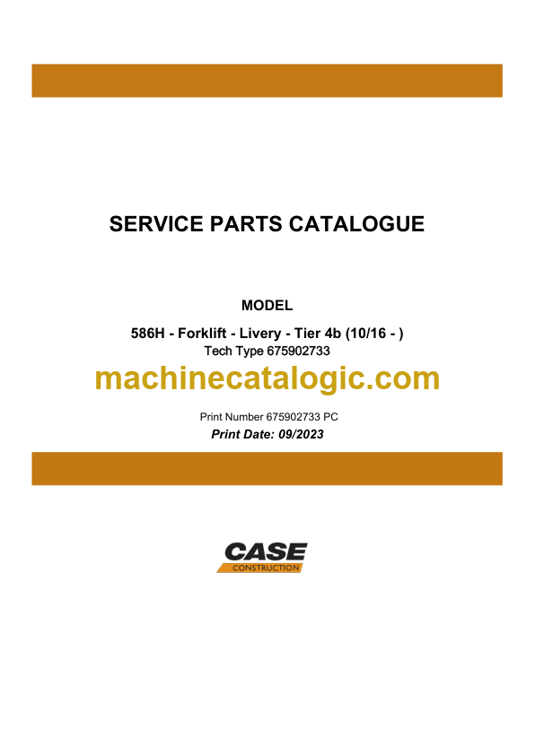 Case 586H Tier 4B Forklift Livery Service Parts Catalogue