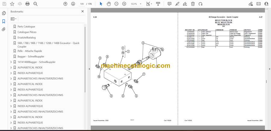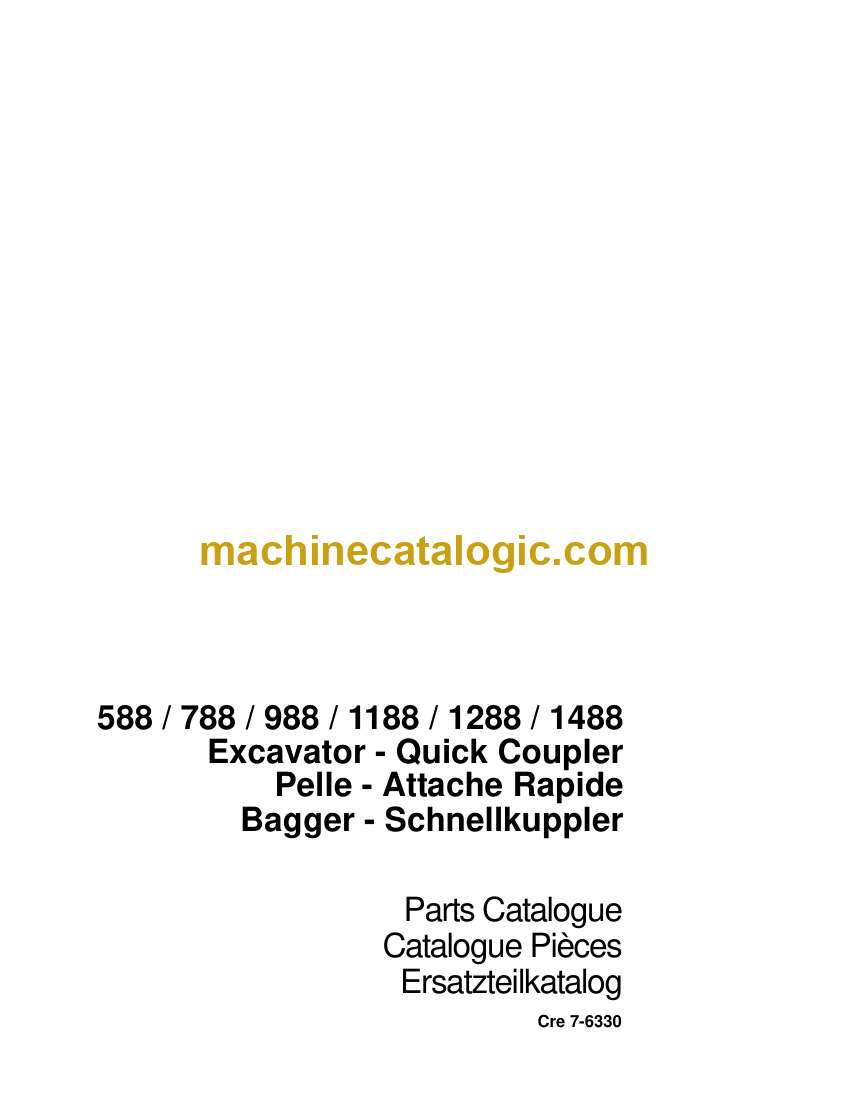Case 588, 788, 988, 1188, 1288, 1488 Excavator – Quick Coupler Index: