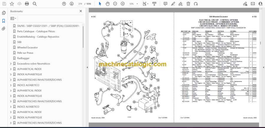 This Case 588 wheeled excavator usually spends its life loading trucks, trenching along roads, and working around tight urban jobsites where you’re always moving between spots. This parts catalog is what I’d pull up when I need to identify the exact components on the lower and upper carriage, axles, wheels, tanks, and rotary joint before I order anything. For example, if a rotary joint is seeping and I only want to replace the seals, I’ll use this book to trace the joint breakdown, pick out each seal and bushing, and make sure I’m not missing any of the small hardware that’s easy to overlook.
