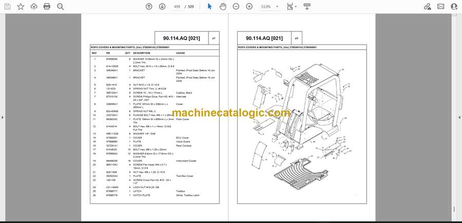 90.114.AQ [021] ROPS COVERS & MOUNTING PARTS; (Var) 37BD00103,37BD00801