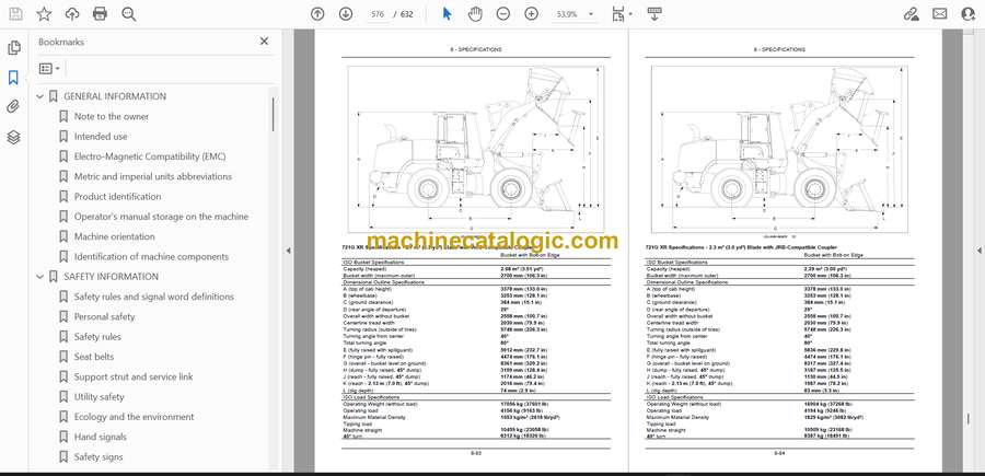 These G‑series loaders usually live in rough spots—quarries, feed yards, snow work, pipe jobs—where you’re cycling buckets all day in dust, mud, or frozen slop. This operators manual helps you run the machine the way it was meant to be run: what each control really does, how it reacts under load, and the daily checks that keep you working instead of waiting on a service truck. Picture backing up on a slick stockpile, trying to feather the throttle and brake so you don’t spin or stall—this is the book that explains how the transmission, brakes, and hydraulics are supposed to behave so you can trace issues and adjust your habits.