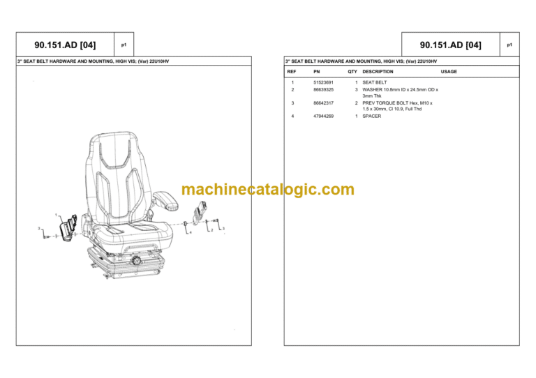 90.151.AD [04] 3” SEAT BELT HARDWARE AND MOUNTING, HIGH VIS; (Var) 22U10HV