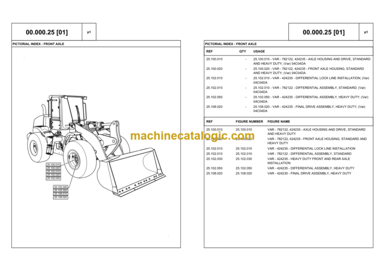 PICTORIAL INDEX – FRONT LOADER AND BUCKET