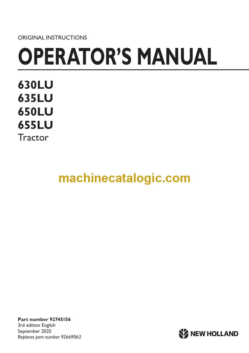 Case 630LU, 635LU, 650LU, 655LU Tractor Operators Manual (92745156 Replaces 92669063) (September 2025)