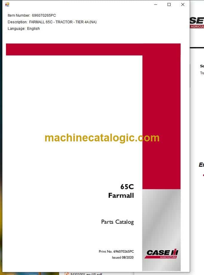 On a Case 65C Farmall that’s doing loader work, mowing, or light tillage around the farm, this parts catalog is what I keep open when I’m figuring out exactly what to order. It lets me see how every bracket, seal, and fastener fits together on the tractor so I don’t guess at parts. If, for example, you’ve got a loader pin wearing out and a seep around the front end, I’ll use this catalog to trace the whole assembly, pick out the right pin, bushings, and any dust seals or clips that should be replaced at the same time.