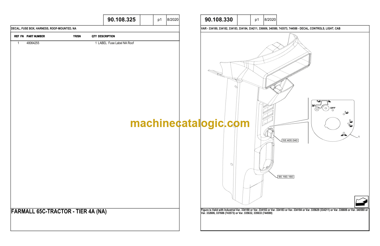 VAR – 334183, 334211 – CAB ROOF, W/ HIGH VISIBILITY PANEL, HATCH, GLASS, NA