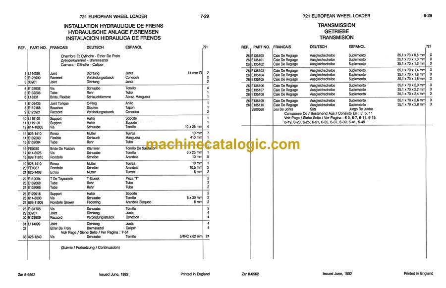 Case 721 European Wheel Loader Parts Catalog (8-6562)