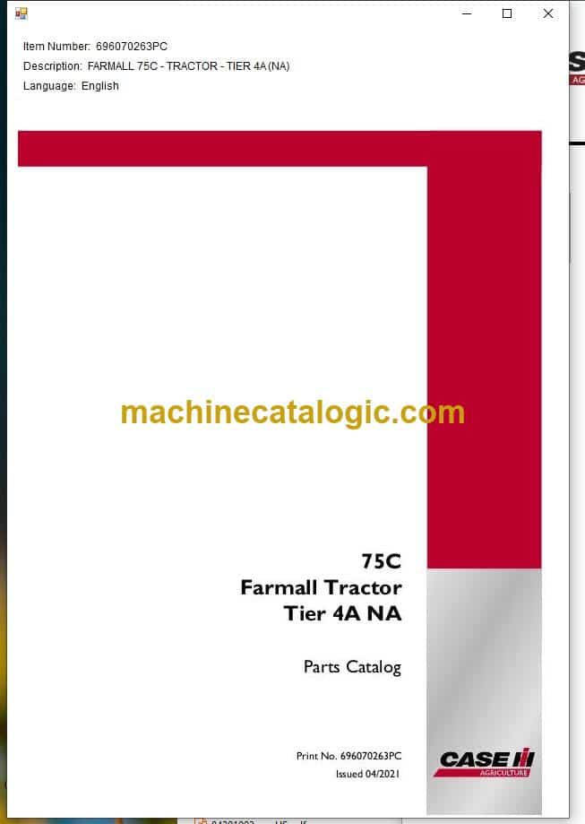 Case 75C Tier 4A NA Farmall Tractor Parts Catalog