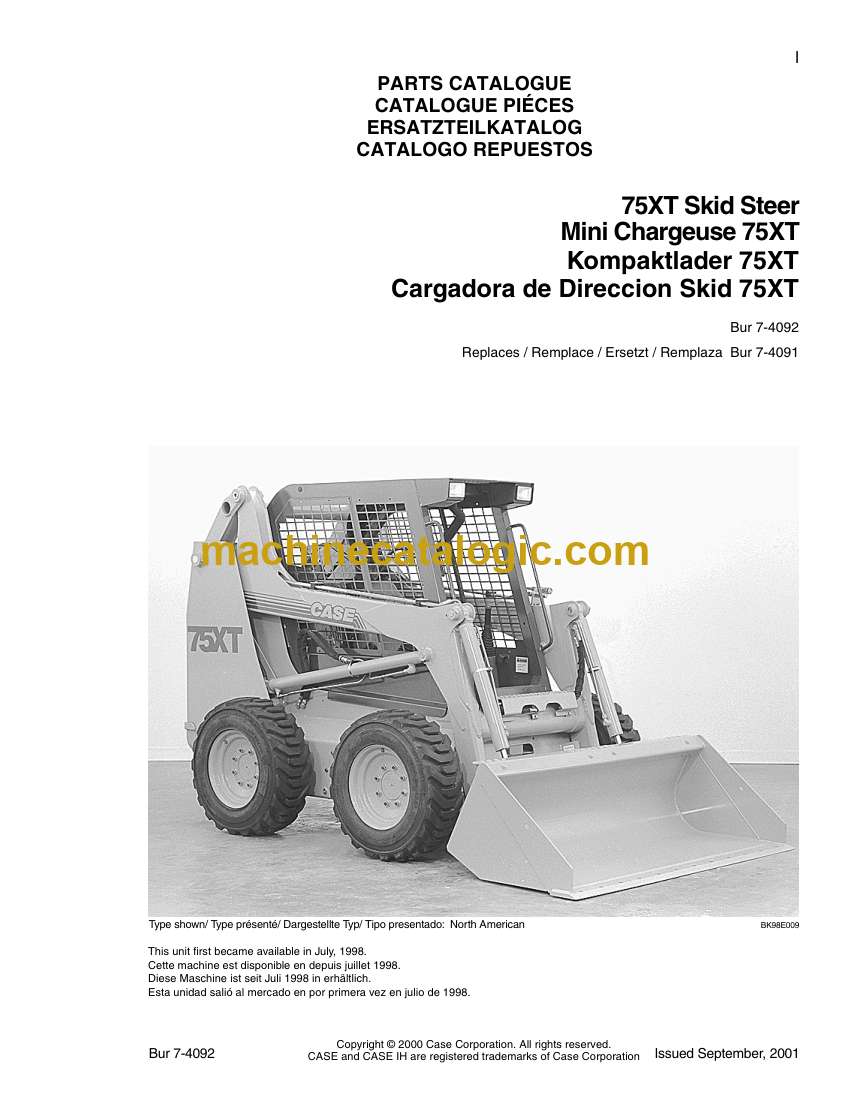 Case 75XT Skid Steer Parts Catalog (7-4092)