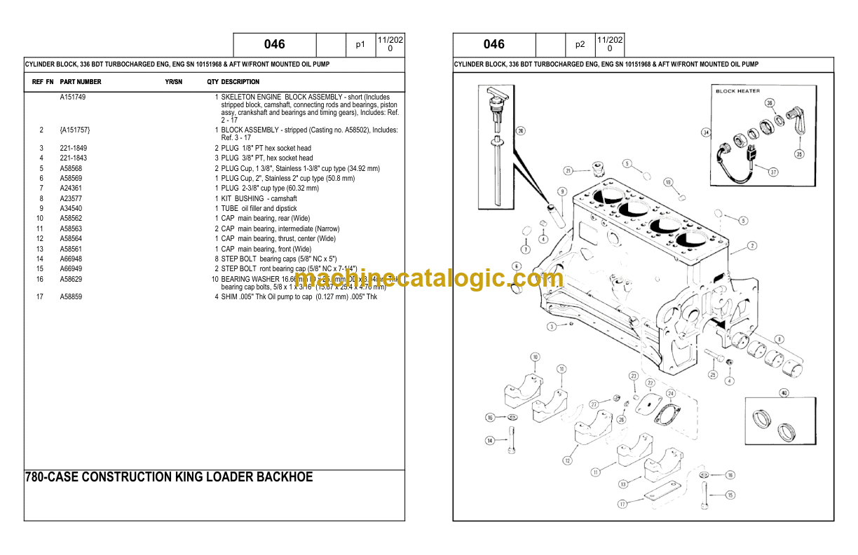 046 CYLINDER BLOCK, 336 BDT TURBOCHARGED ENG, ENG SN 10151968 & AFT W/FRONT MOUNTED OIL