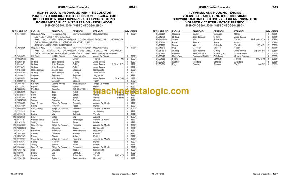 Case 888B Crawler Excavator Parts Catalog (8-9342)