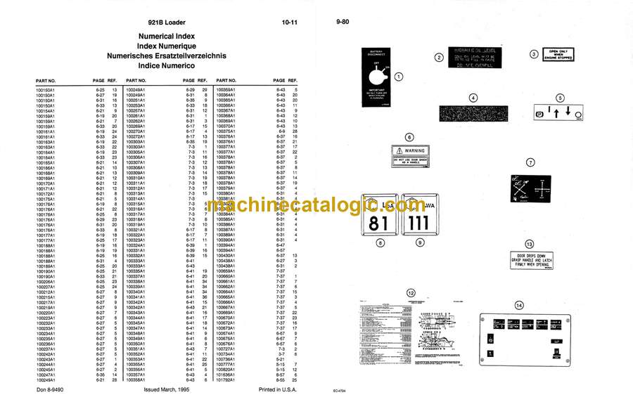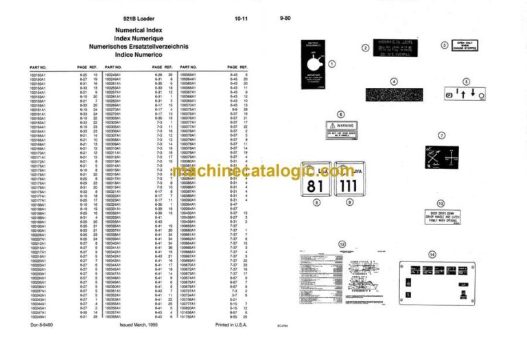 Case 921B Wheel Loader Parts Catalog (8-9490)