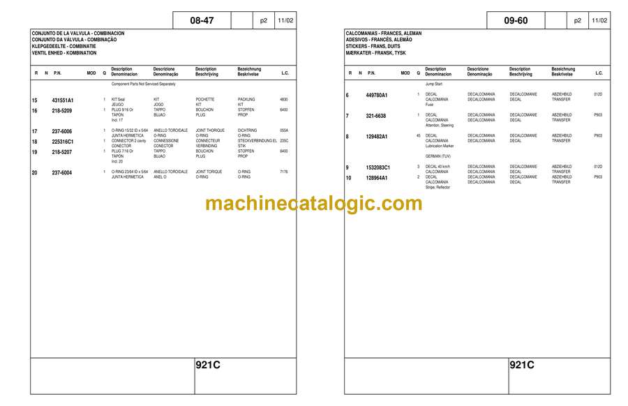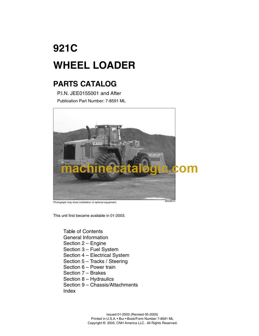 Case 921C Wheel Loader Parts Catalog (7-8591ML)