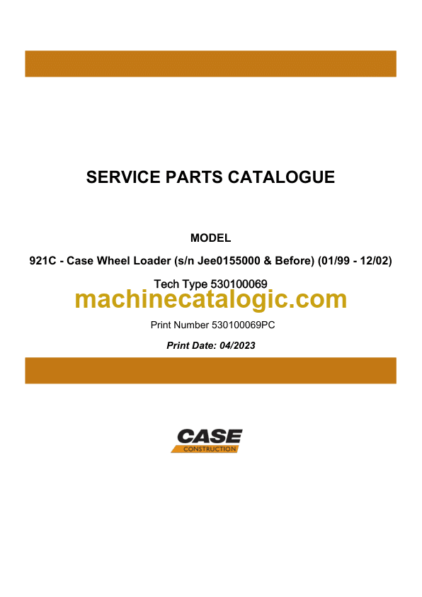 Case 921C Wheel Loader Service Parts Catalogue