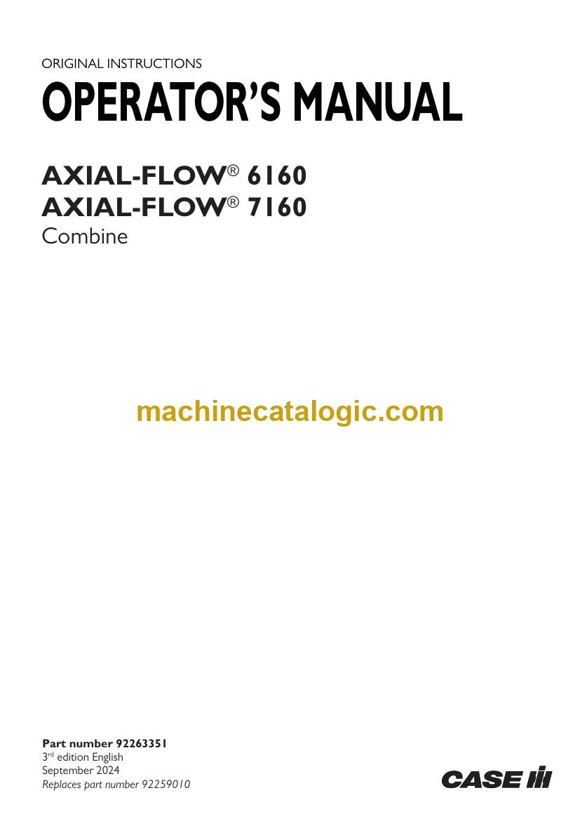 Case Axial-Flow 6160, 7160 Combine Operators Manual