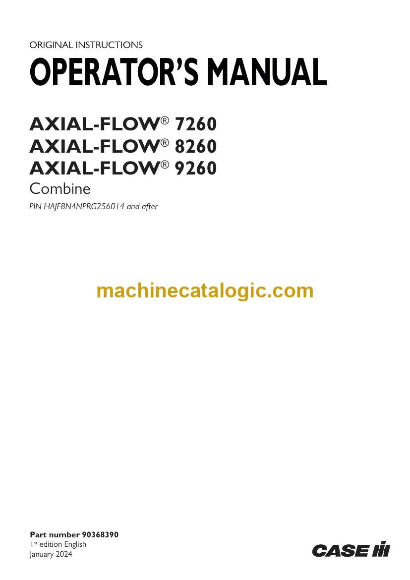 Case Axial-Flow 7260, 8260, 9260 Combine Operators Manual (90368390)