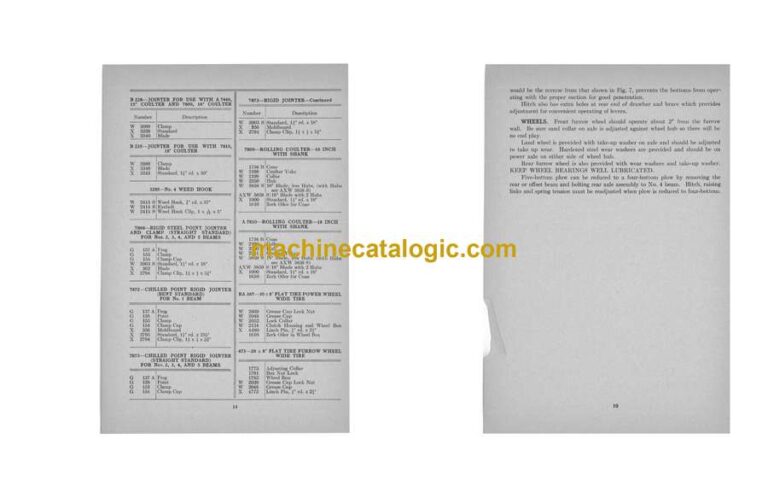 Model: B52, B54, B56 Centennial Tractor Plow With Parts list