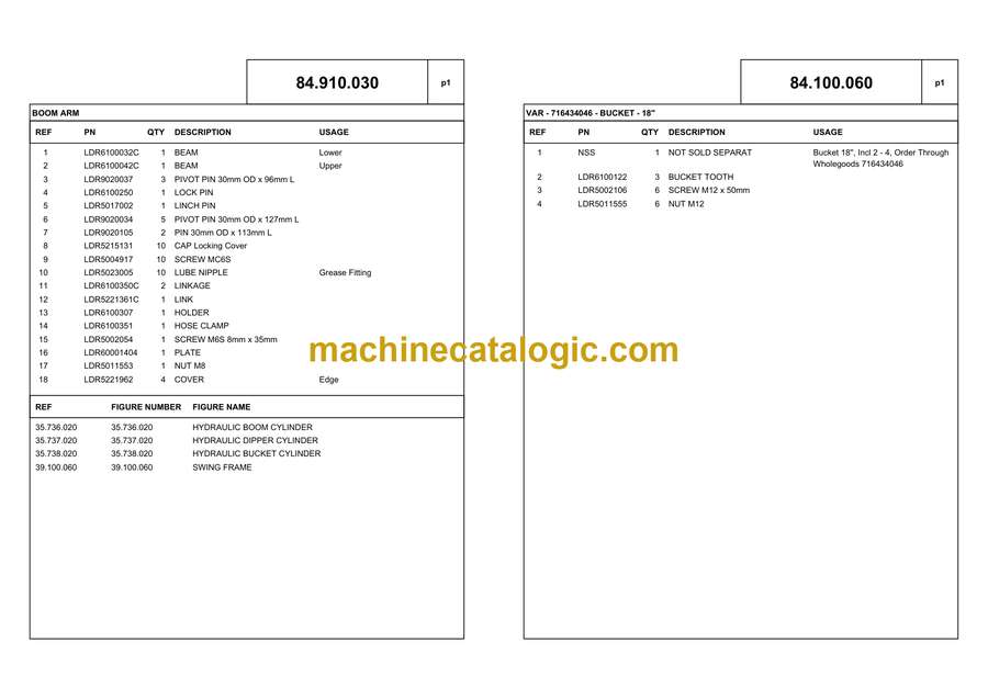 000.000.84 PICTORIAL INDEX – BOOMS, DIPPERS & BUCKET