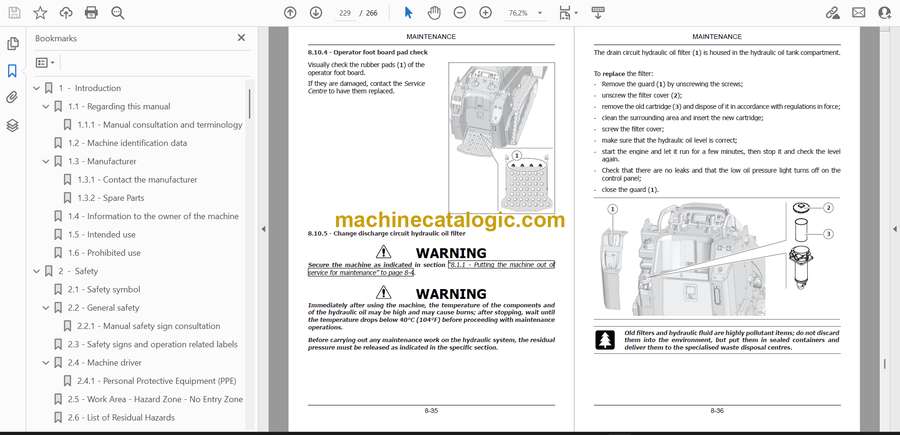 - 8.10.5 – Change discharge circuit hydraulic oil filter