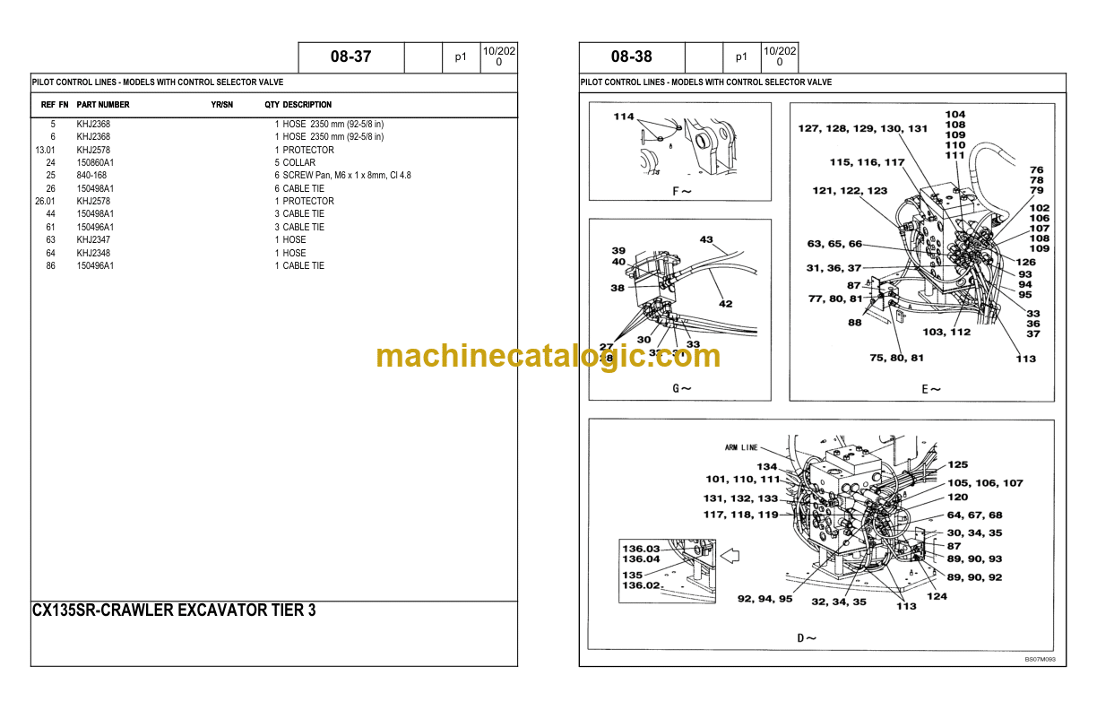 08-90 01 PILOT CONTROL LINES, TRAVEL – MODELS WITH DOZER BLADE