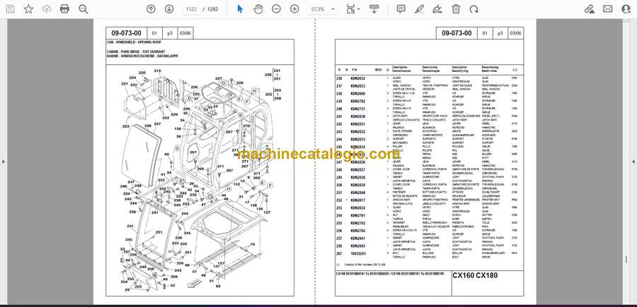 Case CX160, CX180 Crawler Excavators Parts Catalog (7-7133)