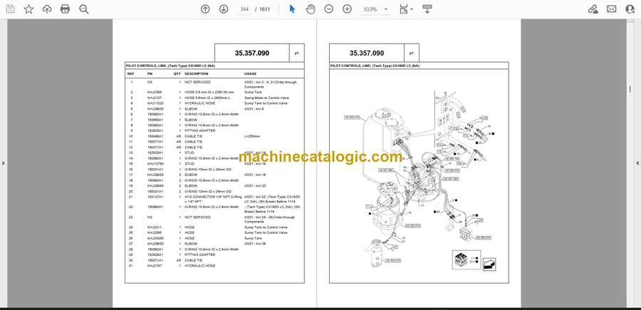 35.106.020 HYDRAULIC PUMP, CONTROL VALVE, LINE; (Tech Type) CX160D LC (NA)