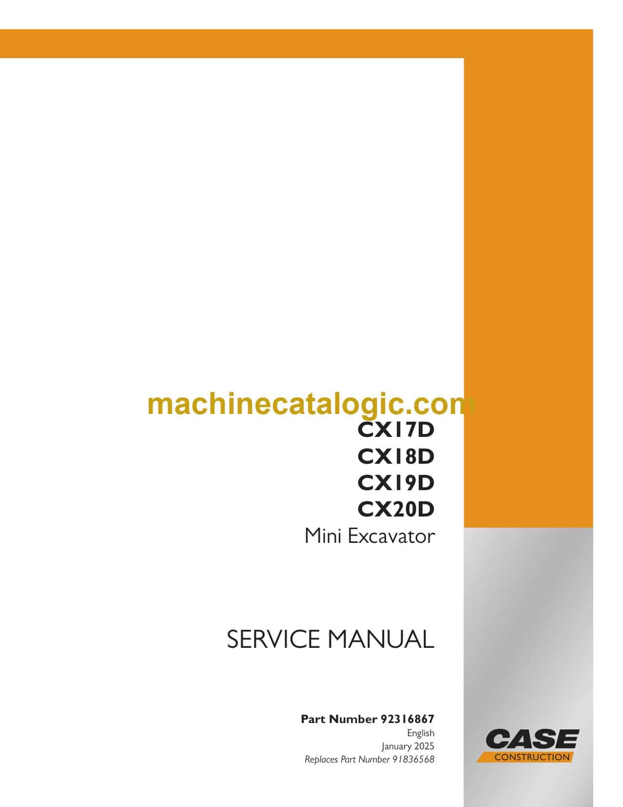 Case CX17D, CX18D, CX19D, CX20D Mini Excavator Service Manual