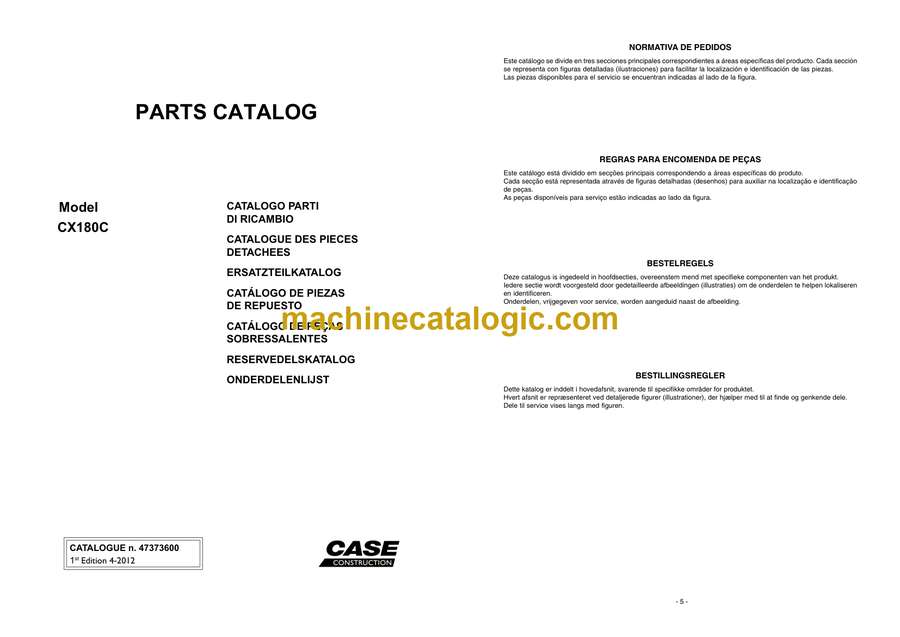 Case CX180C Crawler Excavator Parts Catalog (47373600)