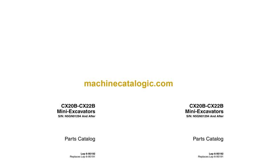Case CX20B, CX22B Mini Excavators Parts Catalog (6-95192_int_USN)